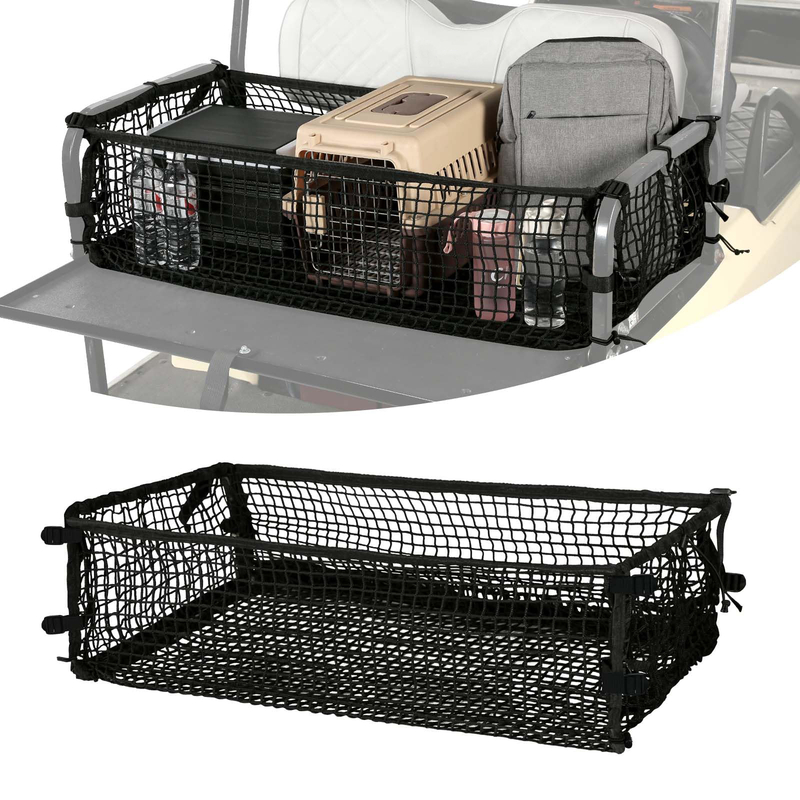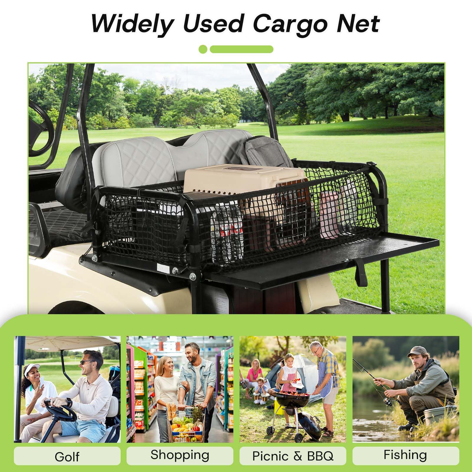 Universal Golf Car Cargo Net: This storage net fits most 4-passenger golf carts and is compatible with most major brands, such as Yamaha, EZGO, Club Car, etc. (our products are not related to the above brands).