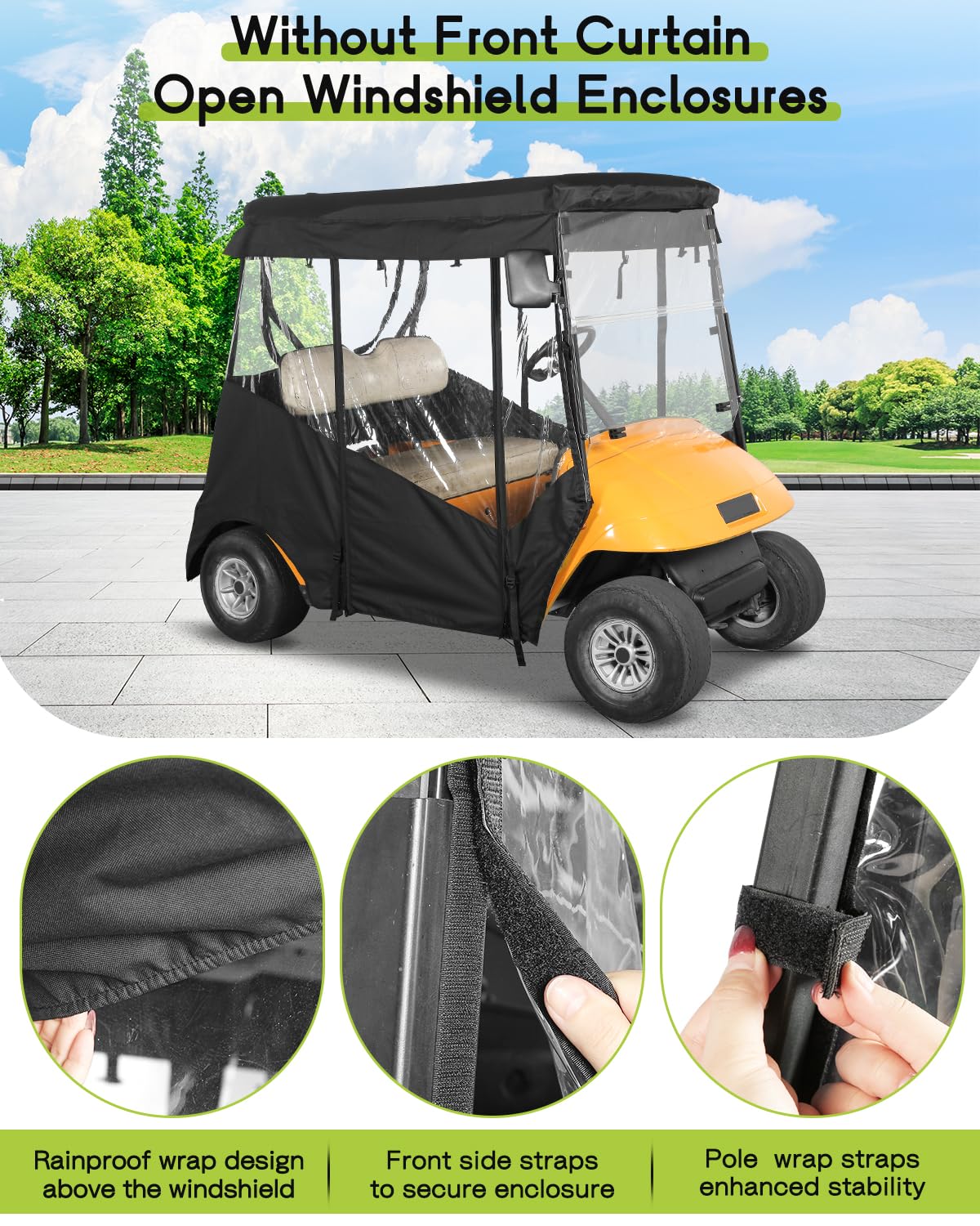 Golf Cart Enclosure No Windshield Curtain Rain Cover 2 Passenger for EZGO TXT Short Roof(Black)