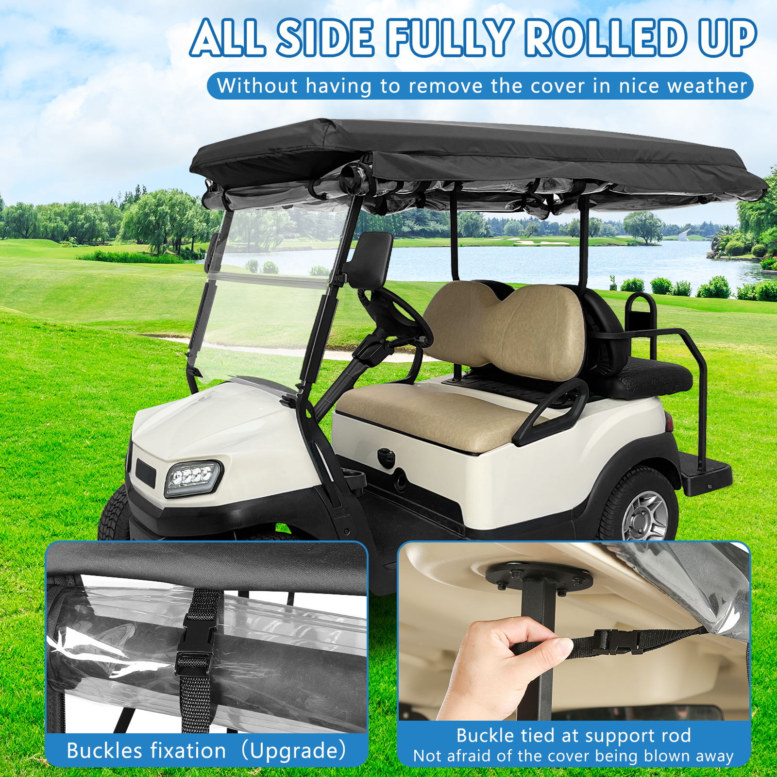 All Around Protection for a Comfortable Ride: This golf cart enclosures 4 passenger acts like a raincoat for your cart,now you can cruise around when it's the cold season or snow or raining.All rolled up design,without having to remove the cover in nice weather