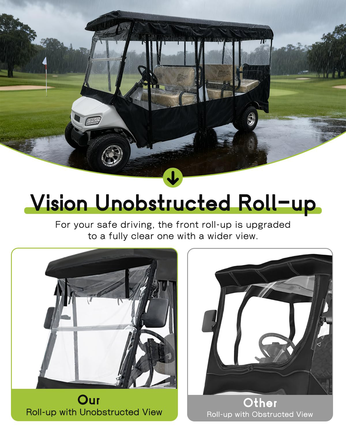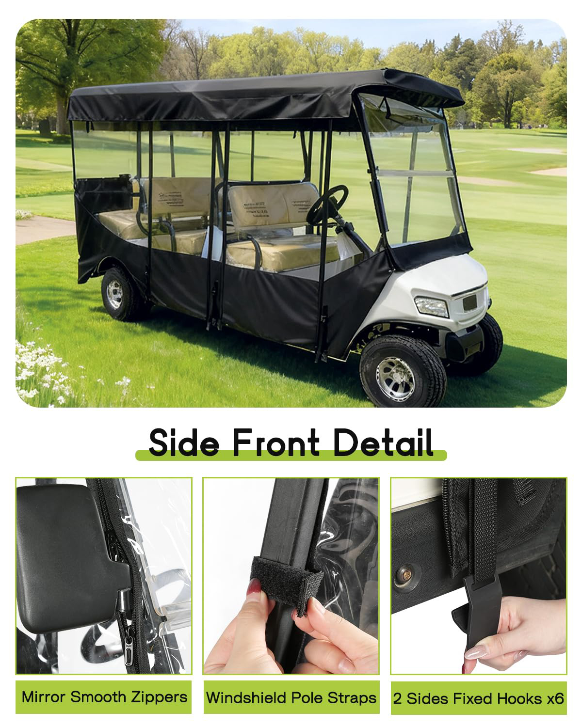 Golf Cart Enclosure for 6 Passenger for Club Car Villager, Waterproof Windproof Driving Rain Cover with 4-Sided Clear Windows Roll-Up Zipper Door