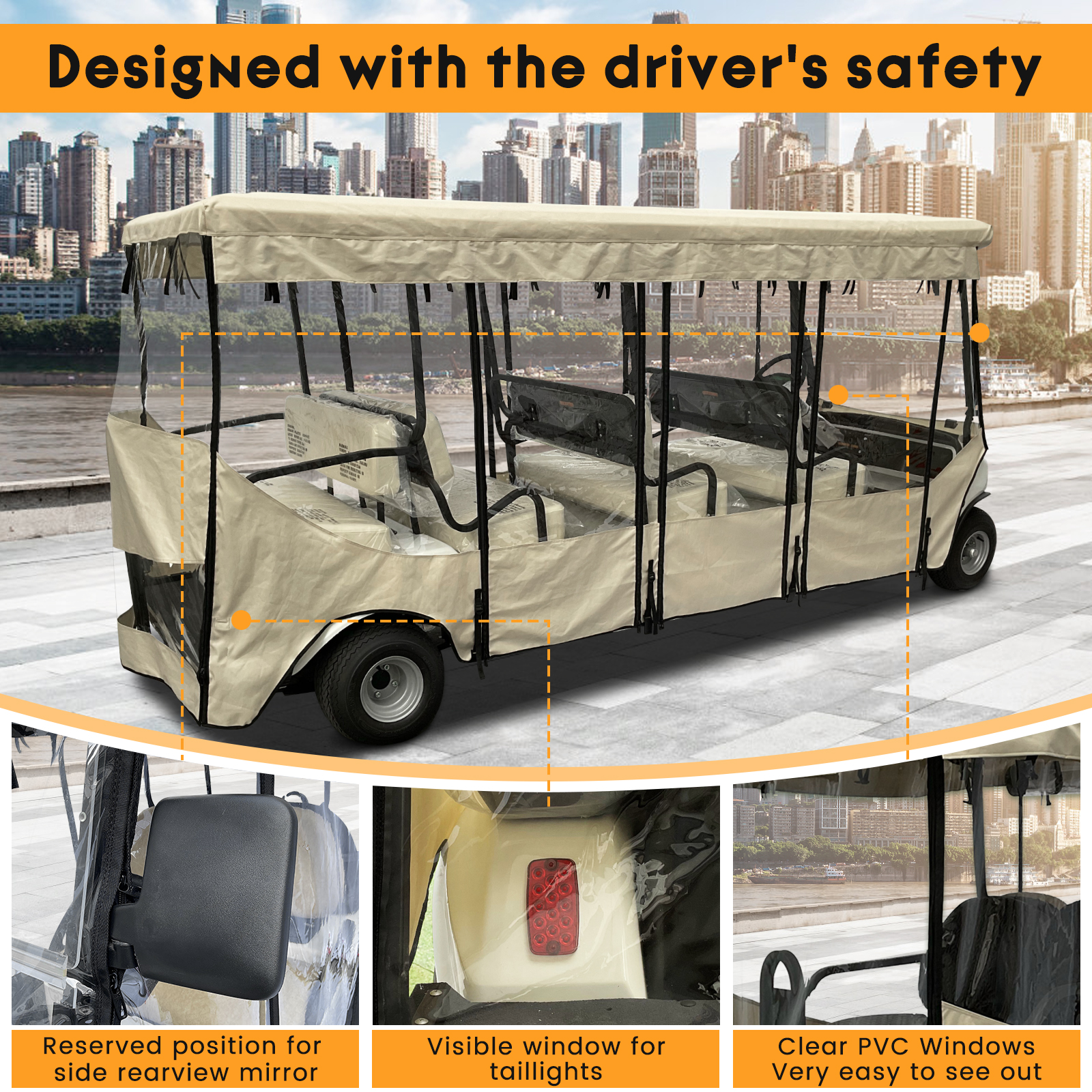 Golf Cart Enclosure for 8 Passenger for Club Car Villager, Waterproof Windproof Driving Rain Cover with 4-Sided Clear Windows Roll-Up Zipper Door - Beige