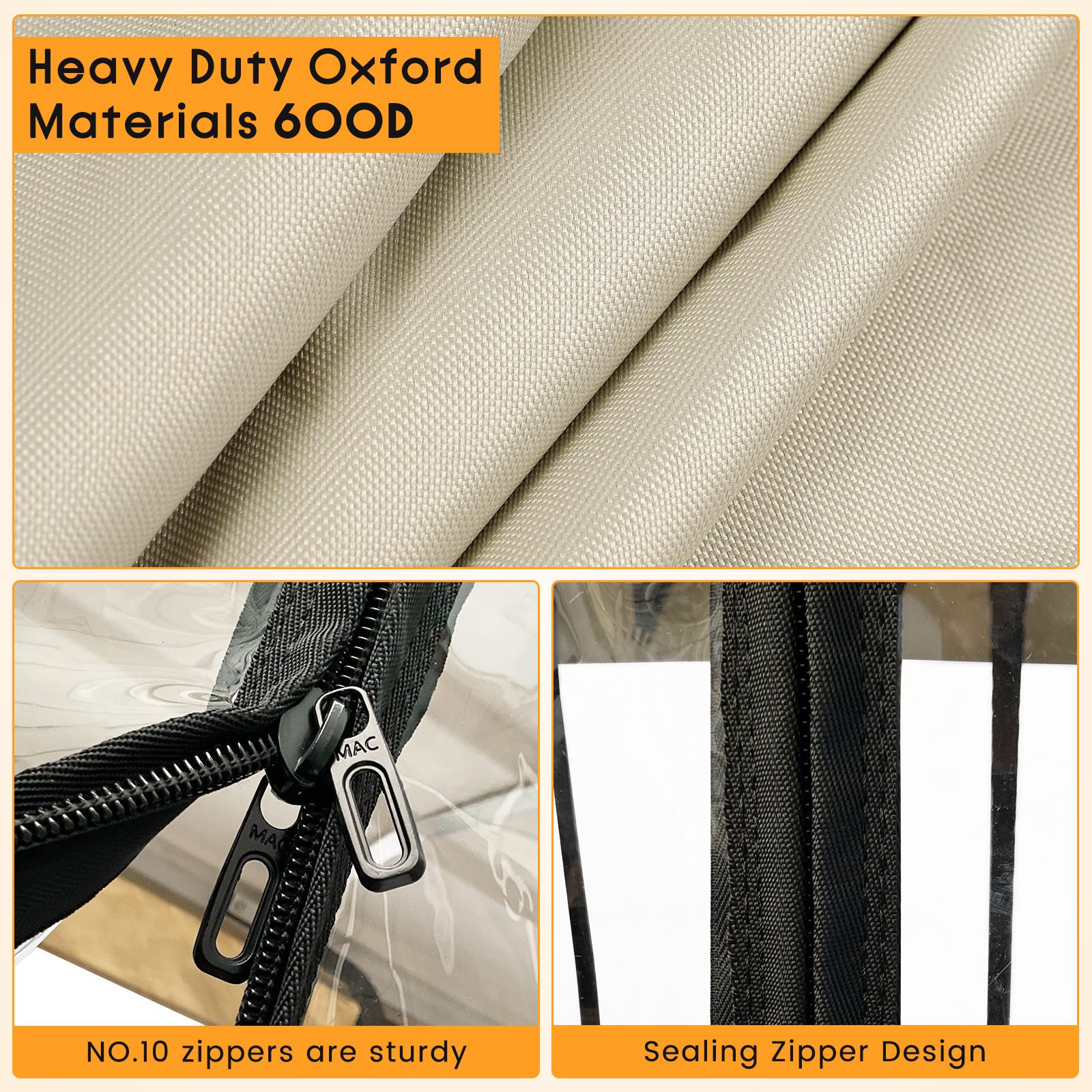 MATERIAL AND DESIGN: Made of 600D heavy-duty waterproof Oxford fabric, the transparent window is made of PVC transparent material to ensure driving, and an upgraded double-ended zipper for smooth sliding and durability.