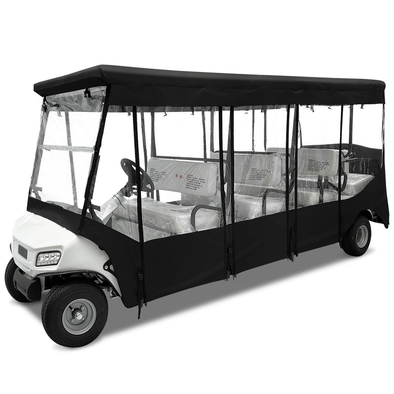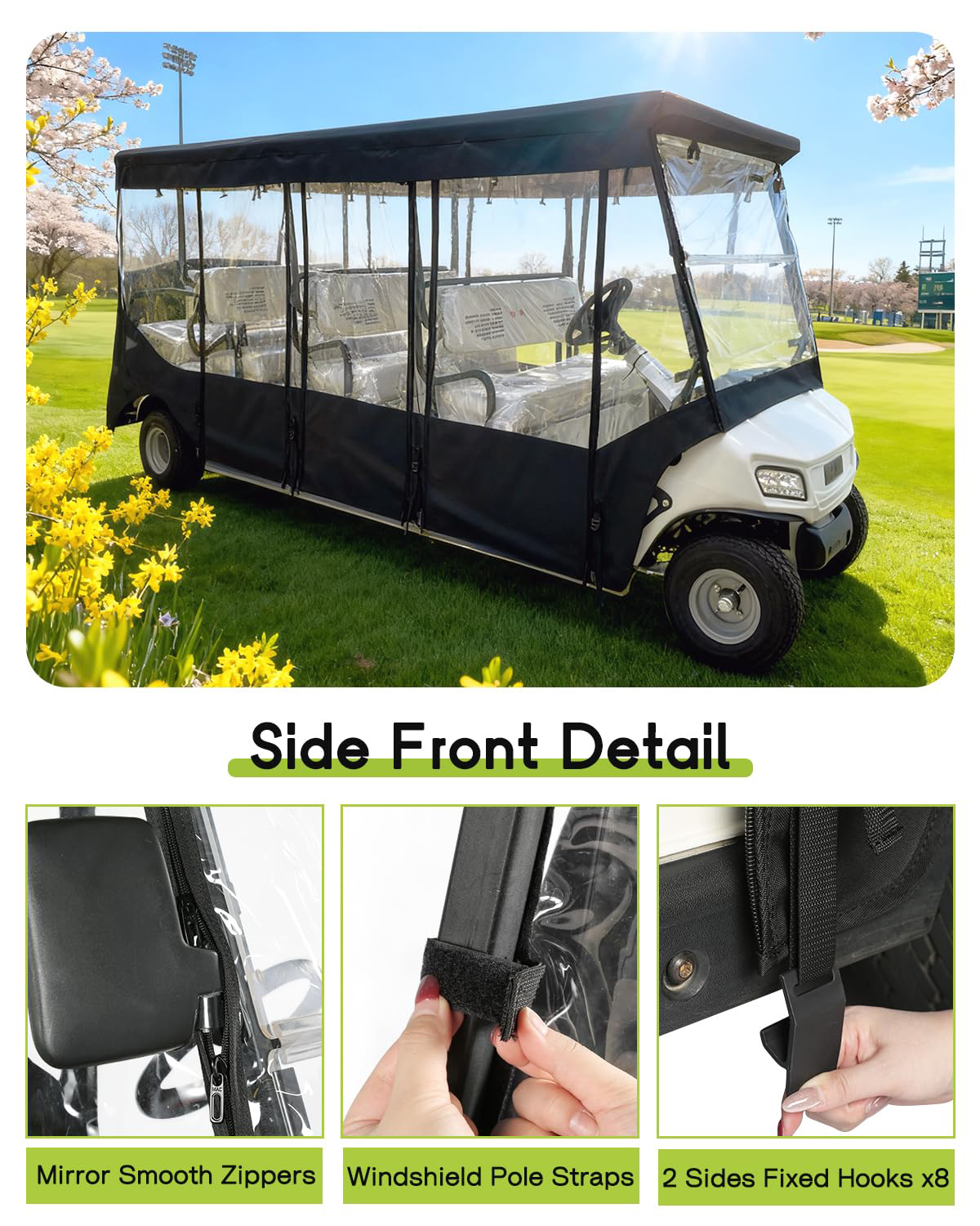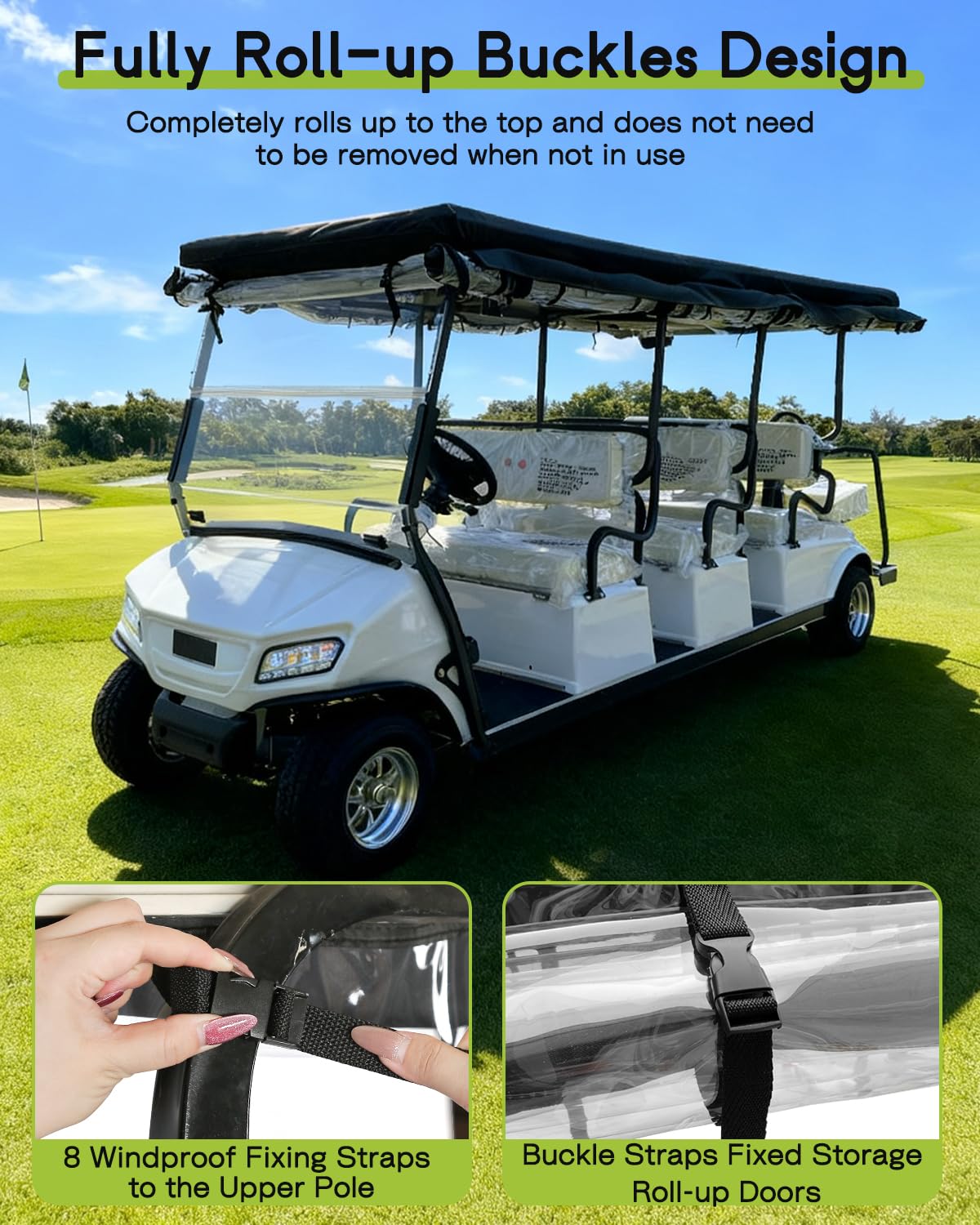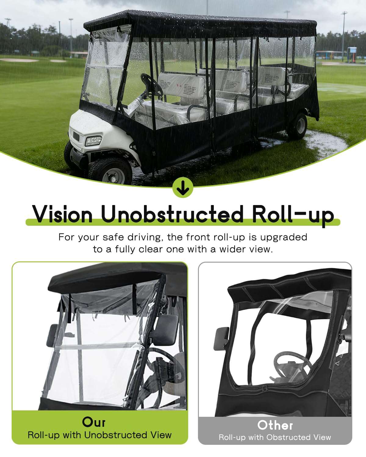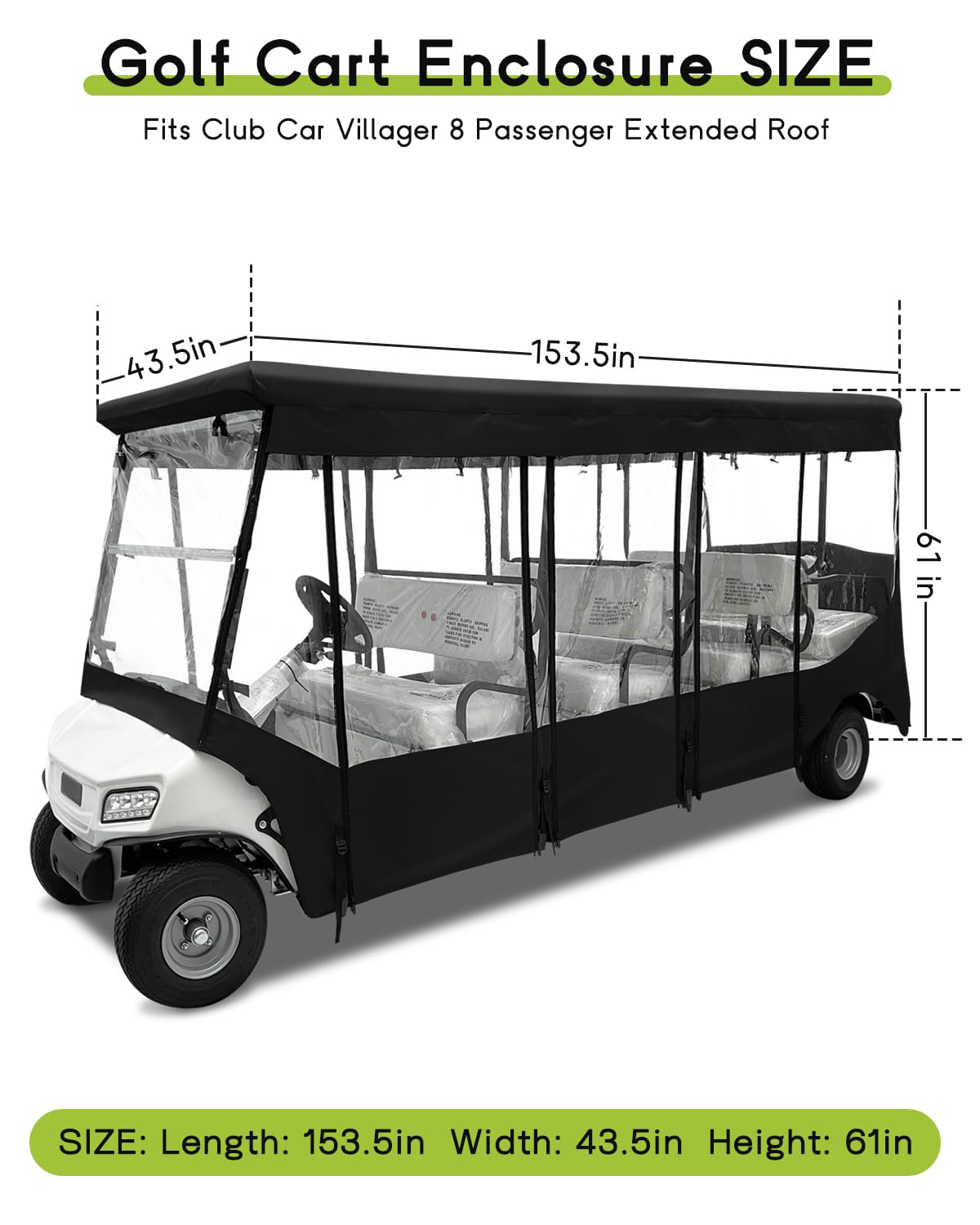 Golf Cart Enclosure for 8 Passenger for Club Car Villager, Waterproof Windproof Driving Rain Cover with 4-Sided Clear Windows Roll-Up Zipper Door