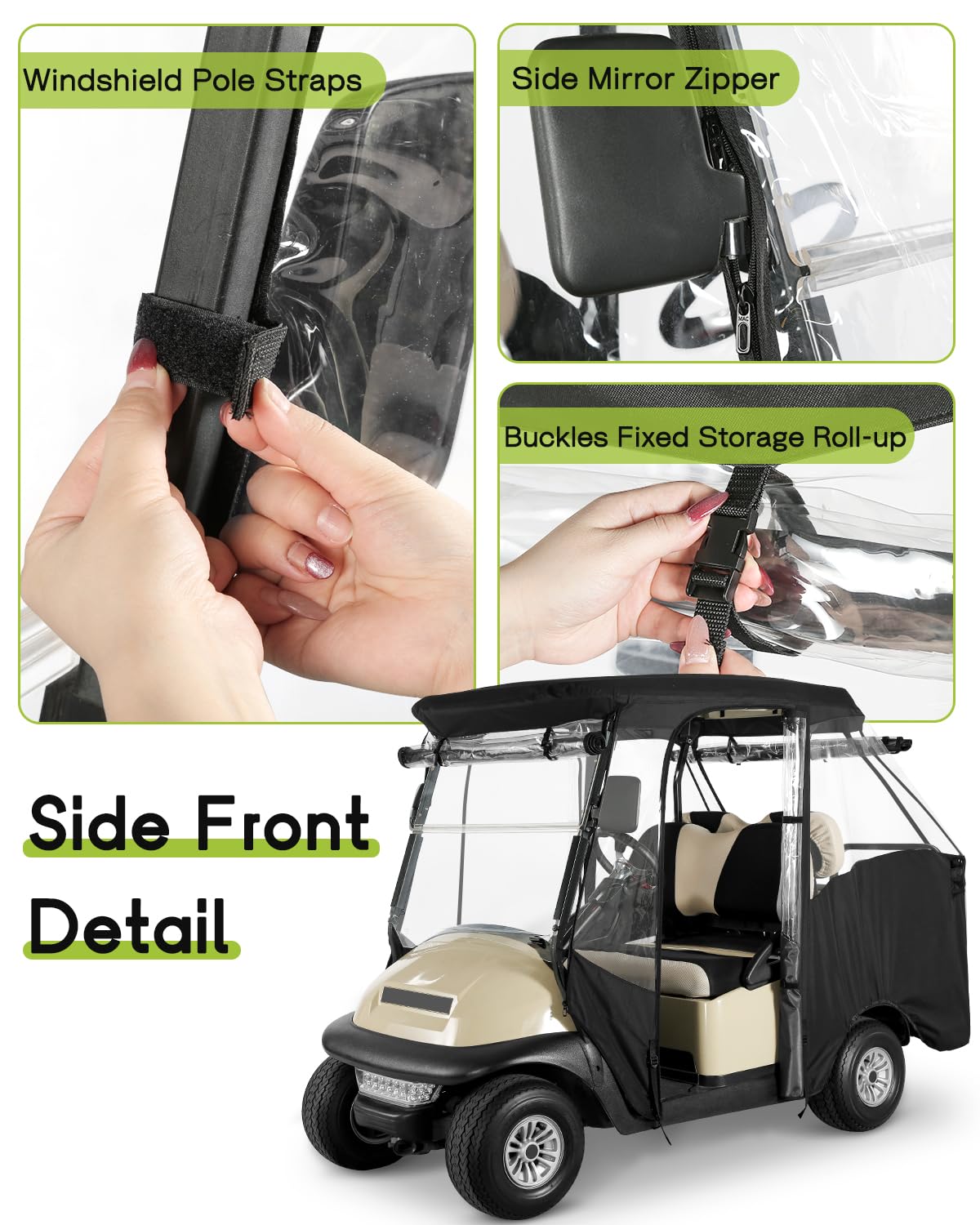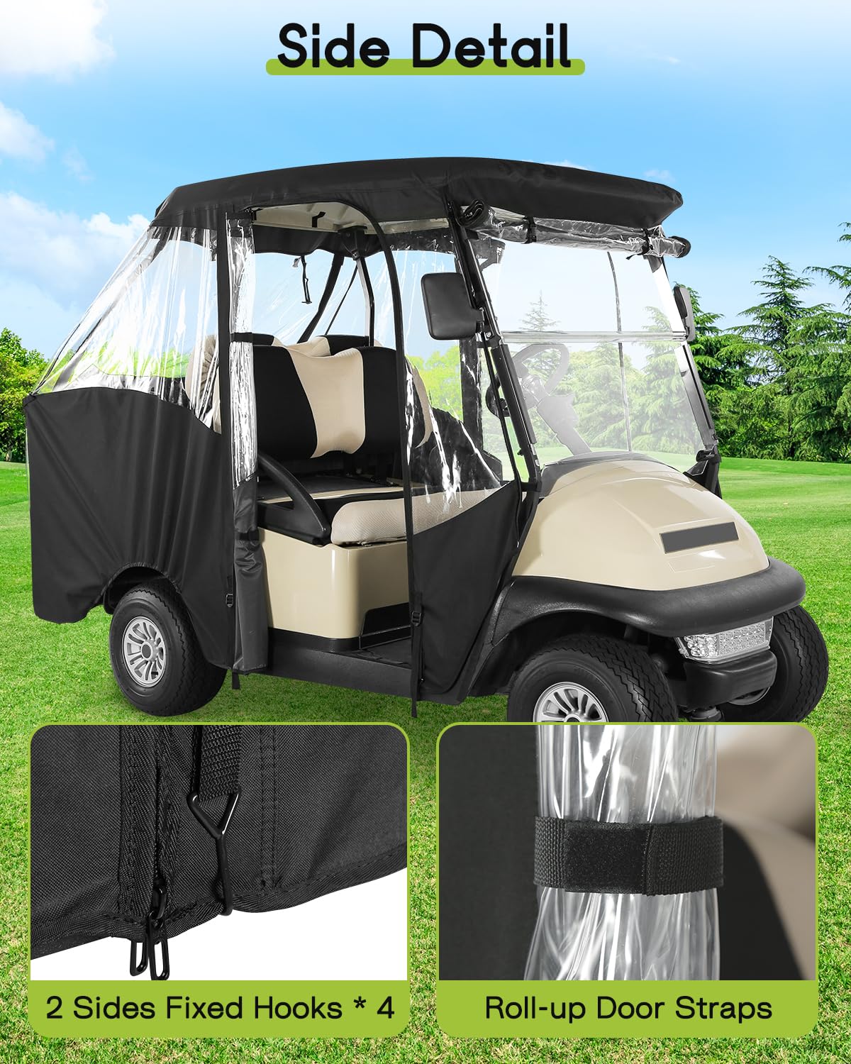 Golf Cart Enclosure for Short Roof 4 Passenger for Club car Precedent / DS / EZGO TXT / RXV / YAMAHA G29, Waterproof Windproof Driving Rain Cover with 4-Sided Clear Windows Side Roll-Up Zipper Door
