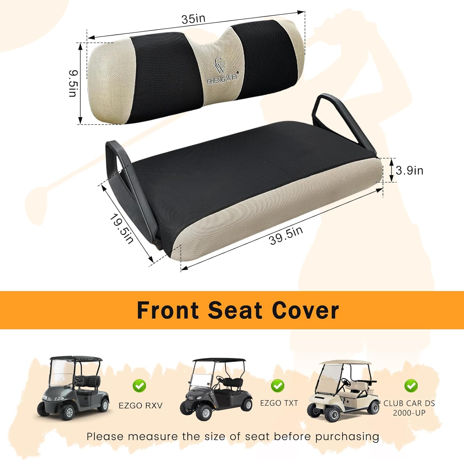 【For EZGO TXT/RXV/Club Car DS After 2000】Due to the elasticity of our material,stretch make them to flexibly match the seat cushions of most golf cart models,If your seat size is within plus or minus 10cm of our size, it will fit your seat,please measure your seat size before purchasing