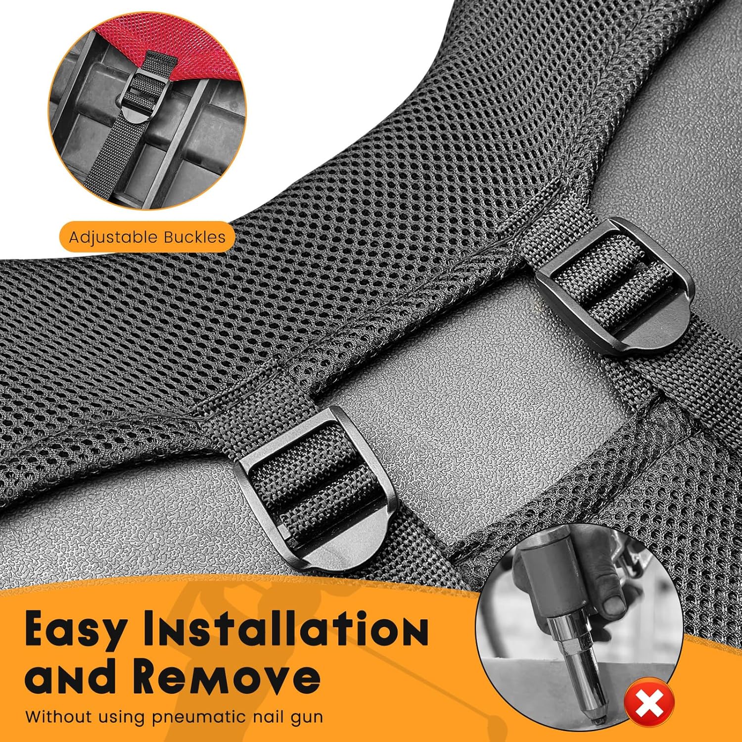 Easy InstallationIn: order to allow you to install without using nail gun, we have designed adjustable buckle made it easy to install,the buckle at the back secures the yamaha golf cart seat covers in place.