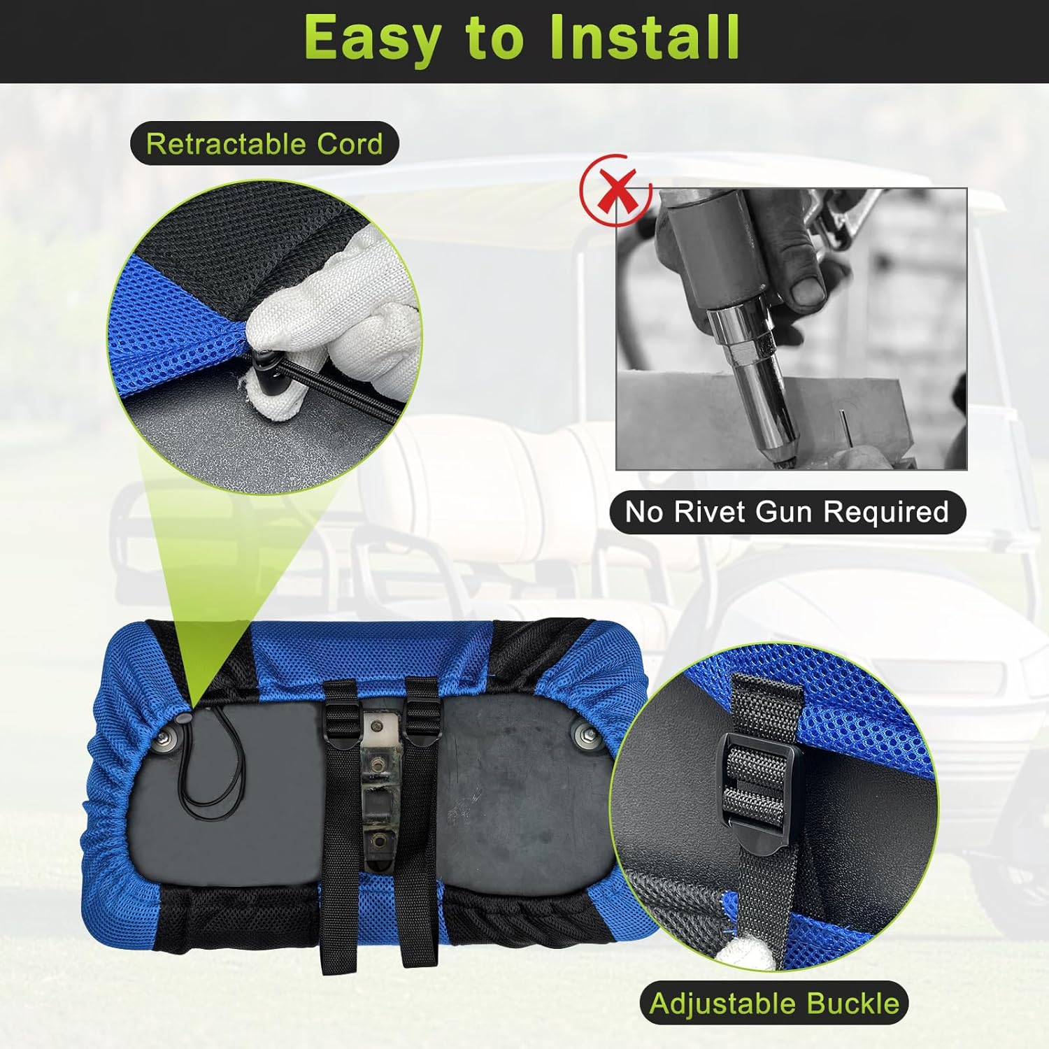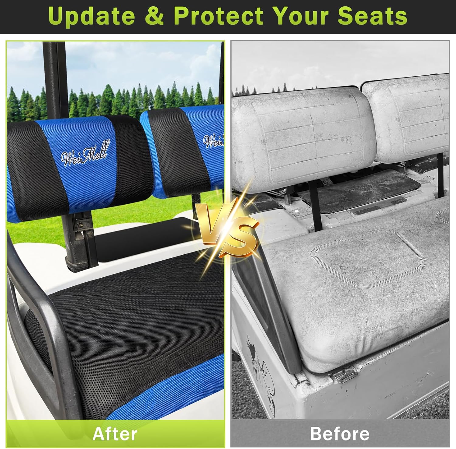 Golf Cart Seat Covers Fit for Yamaha G22 G19 G16 G9 G8 G6 G2 Club Car DS Pre-2000 Front Seat Cover Stretchy Breathable Washable(Black & Blue )